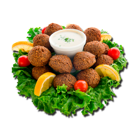 Falafel (6 unidades). El falafel es un plato vegetariano muy popular hecho a base de garbanzos y sazonado con especias.