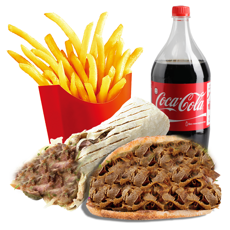 2 Kebab + 1 Dürüm + Nuggets + Patatas + Coca-Cola 1L