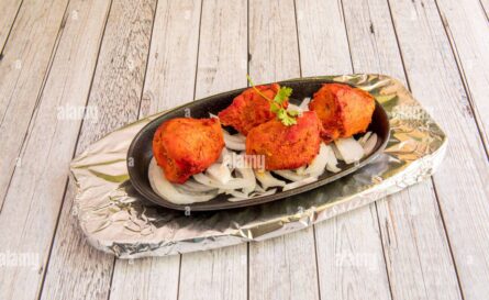 Elaborado con piezas de pechuga de pollo con mezcla de especias Indias y yogur cocidos al horno. (6 Unidades)